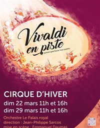 Dans une ambiance festive et colorée, ce spectacle familial sera participatif. Apprentissage des interventions du public 1/4 d'heure avant le concert. Après le succès de Mozart en piste, qui a rassemblé plus de 8 000 spectateurs néophytes comme habitués, c'est au tour de Vivaldi de bondir sur la piste du Cirque d'Hiver. Embarquez pour la Sérénissime ! Carnaval et masques vénitiens, jeunes filles de l'Ospedale della Pietà où officiait Vivaldi : retrouvez les pièces célèbres du fameux compositeur mais aussi certaines de ses pages les plus méconnues, qui seront les tubes de demain et feront le délice des mélomanes les plus avertis. Dans une ambiance festive et colorée, ce spectacle familial sera participatif. Apprentissage des interventions du public 1/4 d'heure avant le concert, à 10 h 45 et 15 h 45. Extraits de :GloriaLes Quatre SaisonsDixit Dominus, RV 807Griselda, "Agitata da due venti"Concertos pour basson, violon et luth... Emmanuel Daumas, mise en scèneJean-Philippe Sarcos, directionOrchestre Le Palais royal sur instruments d'époque8 chanteurs solistes et comédiens