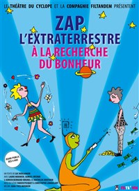Zap l'extraterrestre arrive sur Terre à la recherche du bonheur. Elle croise Madame Chose, une femme généreuse, puis M. Scrounch, un être avare. Drôle, poétique et interactif ! Zap l'extraterrestre arrive sur Terre, décidée à trouver le "bonheur" sans trop savoir de quoi il s'agit. Elle croise Madame Chose, une femme pétillante et généreuse, puis Monsieur Scrounch, un être avare et grognon. 3 personnages drôles et émouvants en interaction permanente avec leur jeune public, des péripéties et gags qui s'enchaînent avec facétie : un véritable élixir de joie, de complicité et d'humanité. Quelques exemples de la participation du jeune public : "Le bonheur, c'est dans le coeur", "Le bonheur, c'est Papa et Maman", "Le bonheur, c'est l'amour", "Le bonheur, c'est comme un avion", "Le bonheur, c'est rigoler", "Le bonheur, c'est jouer" , "Le bonheur, c'est dormir", "Le bonheur, c'est faire ce que je veux"...